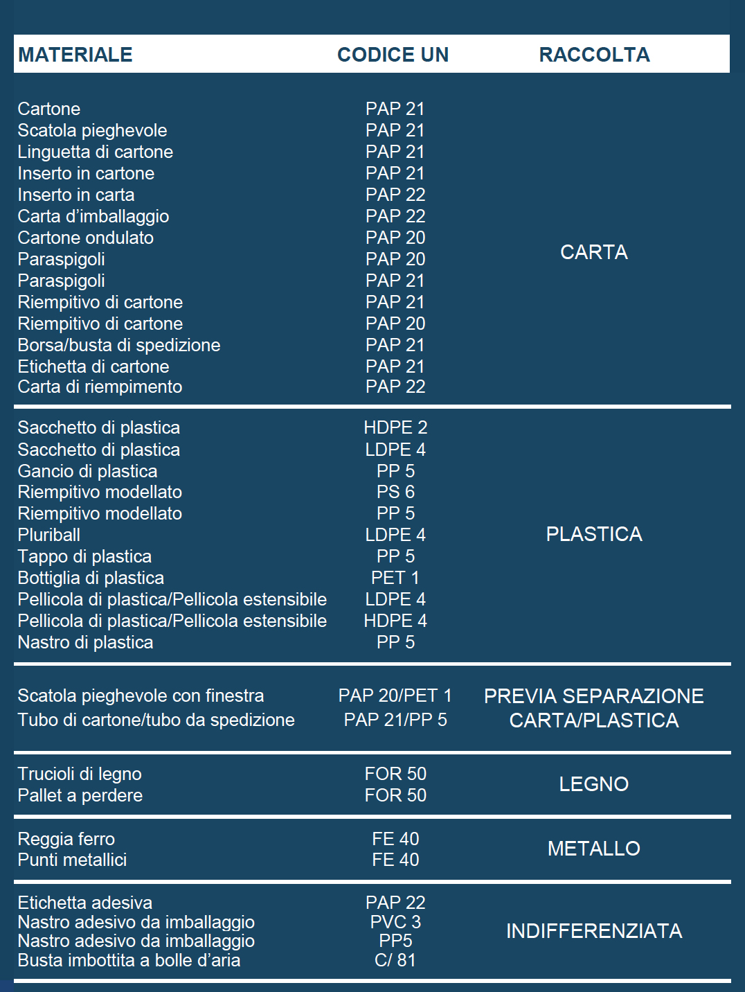 Per qualsiasi dubbio rendiamo qui disponibile le informazioni relative al materiale degli imballi utilizzati nel packaging dei Codici Originali.*